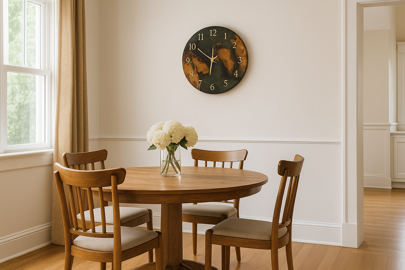 - PREMIUM CONSTRUCTION: 30.5 cm (12 inch) round clock face made with high-quality epoxy resin and wood, perfect for both residential and commercial spaces