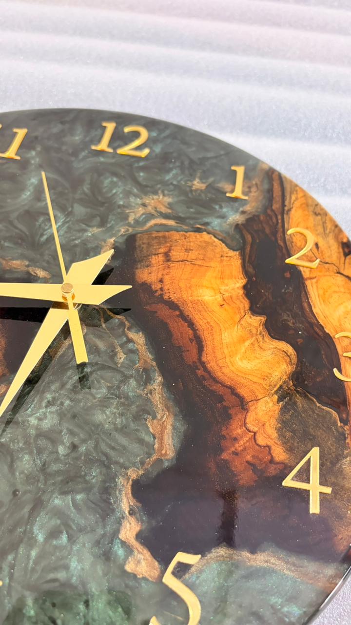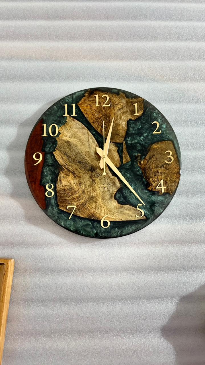 Handcrafted Epoxy Resin Wall Clock with Natural Wood Finish – 12 Inch