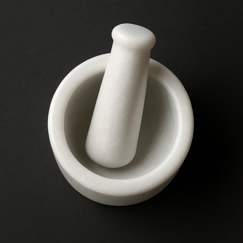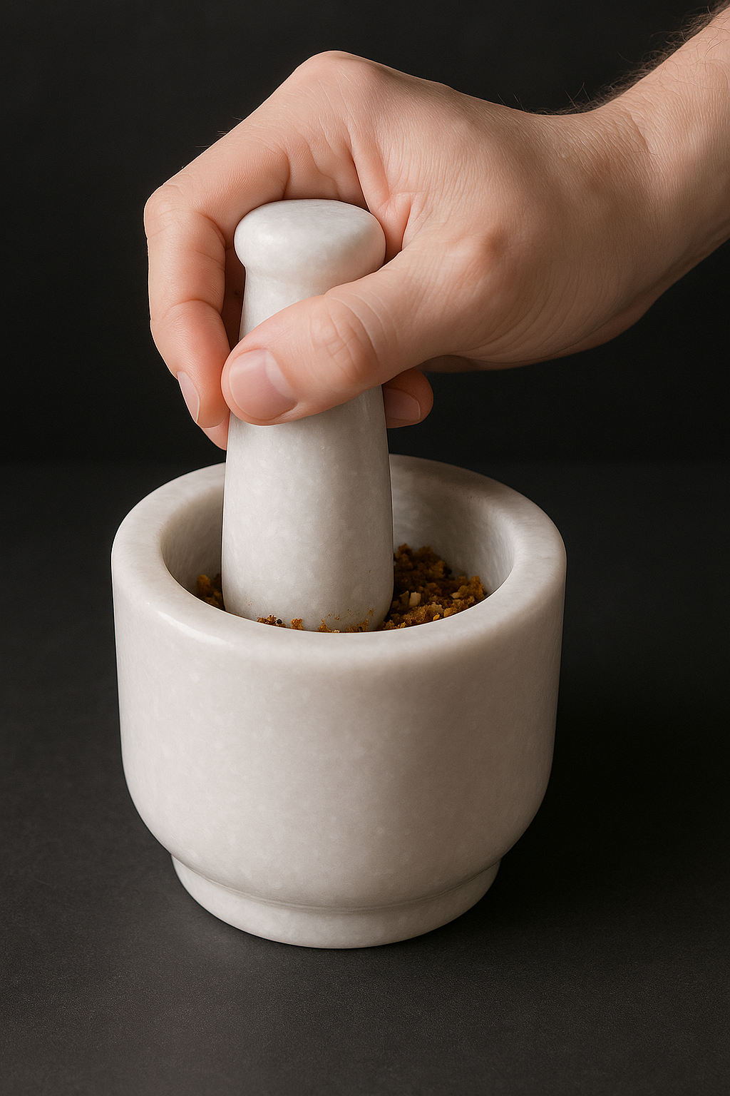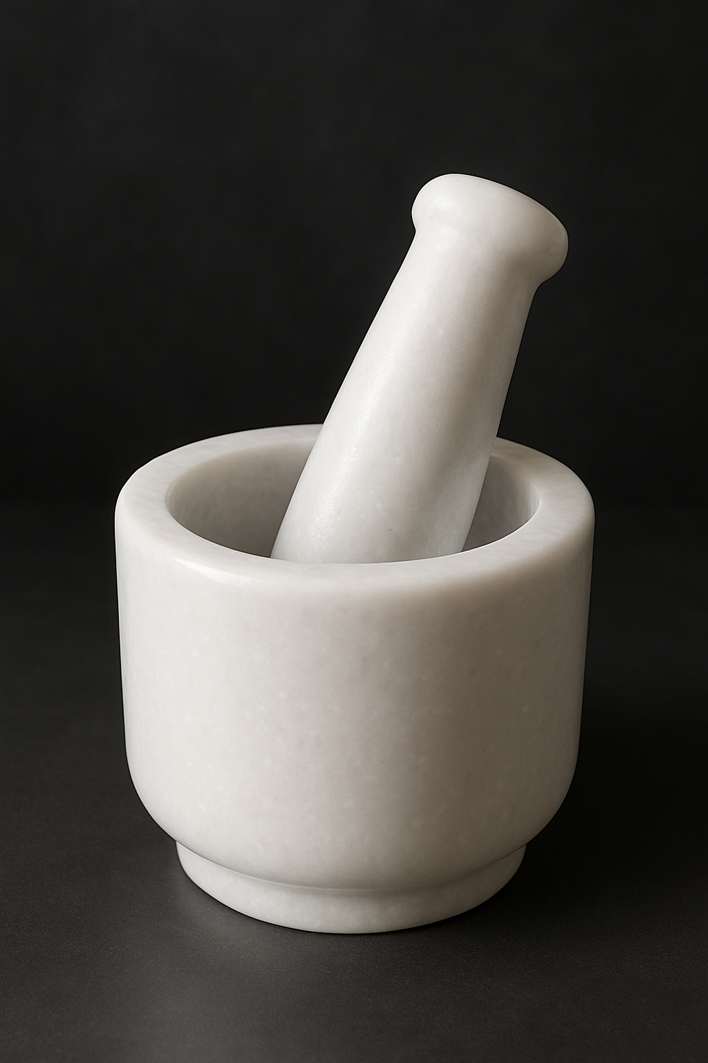 Venkesh Designs Bring home the traditional style of cooking with this Premium 100% White Marble Mortar & Pestle, handcrafted by expert artisans. This heavy-duty set is designed for everyday Indian kitchen use—perfect for crushing ginger, garlic, green chilli, fresh herbs, garam masala, whole spices, and making small chutneys. The natural marble body ensures long life, stability, hygiene, and effortless grinding. Great for home kitchens, gifting, and modern as well as traditional decor. Whether you’re preparing masala for curries or herbs for tea, this mortar & pestle delivers authentic flavour every time. Kharal/Khalbata Traditional Stone Mortar and Pestle Set, Makrana white marble Grinder, Imam dasta, Ohkli musal set, Mixer & Grinder set for kitchen 4″ by 3″.
