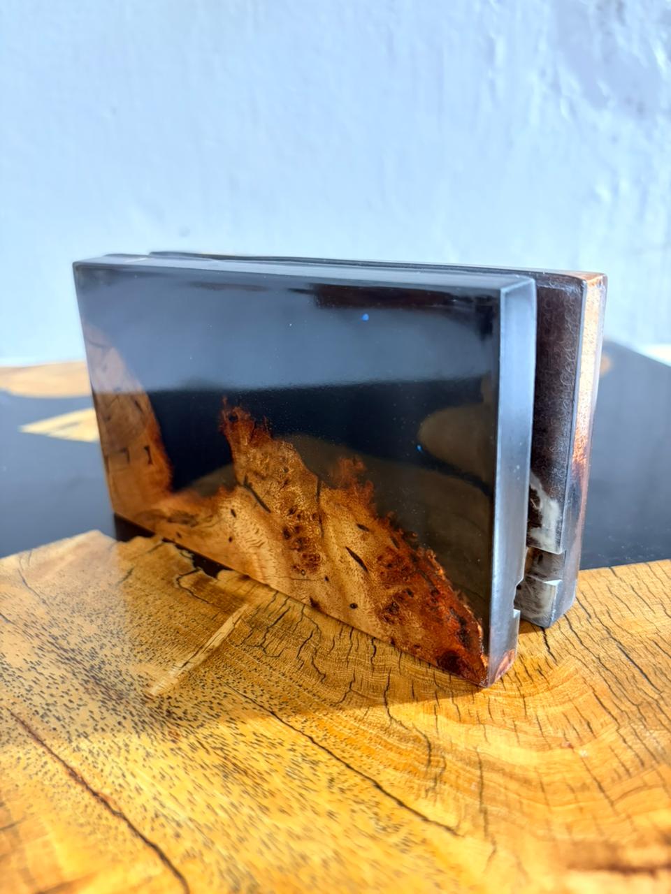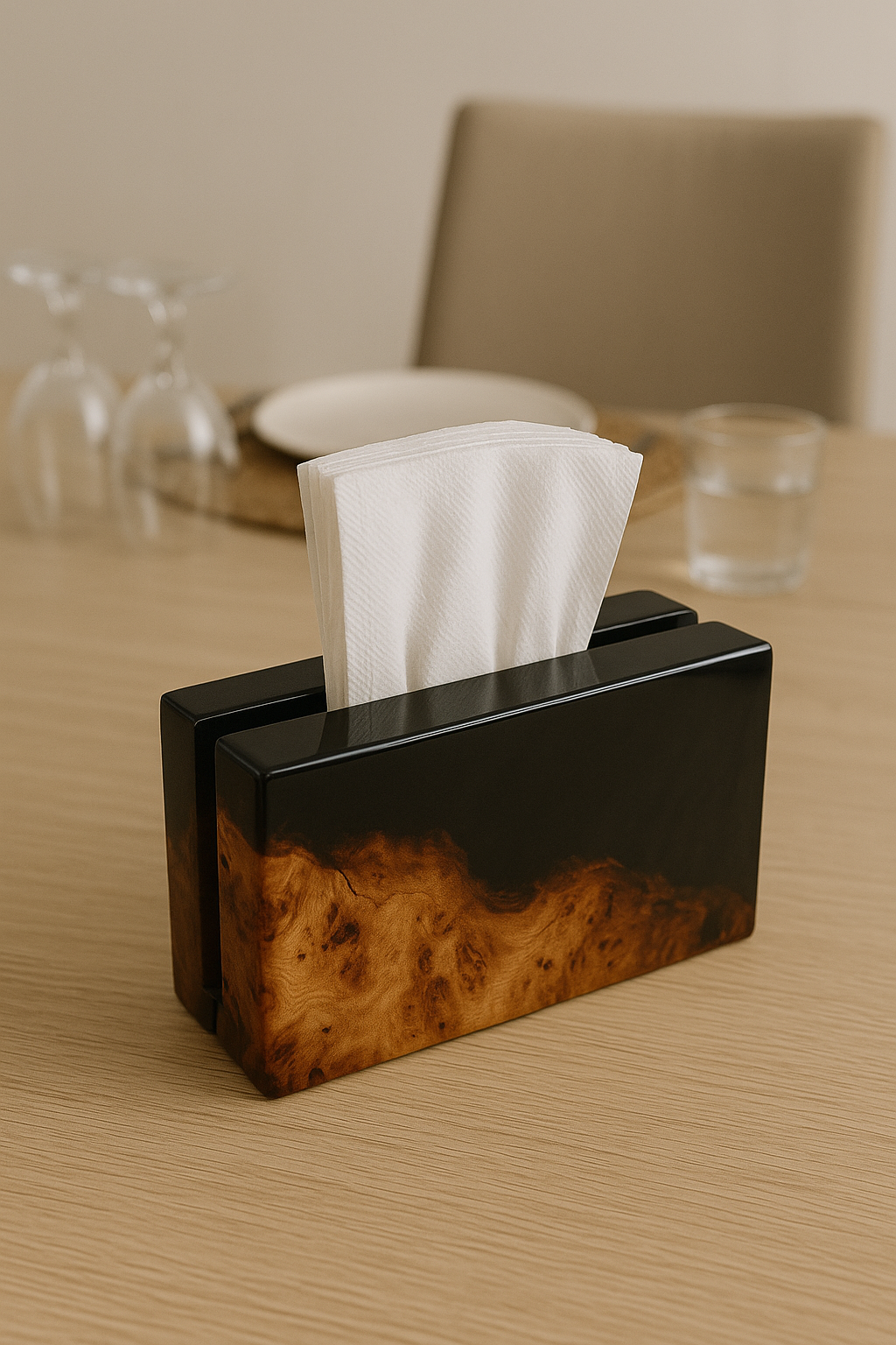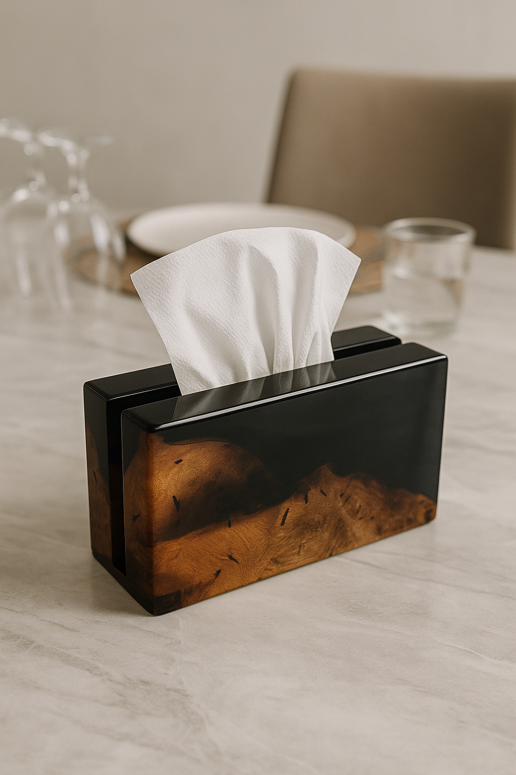 Enhance your home décor with this handmade Epoxy Resin & Natural Wood Tissue Holder.