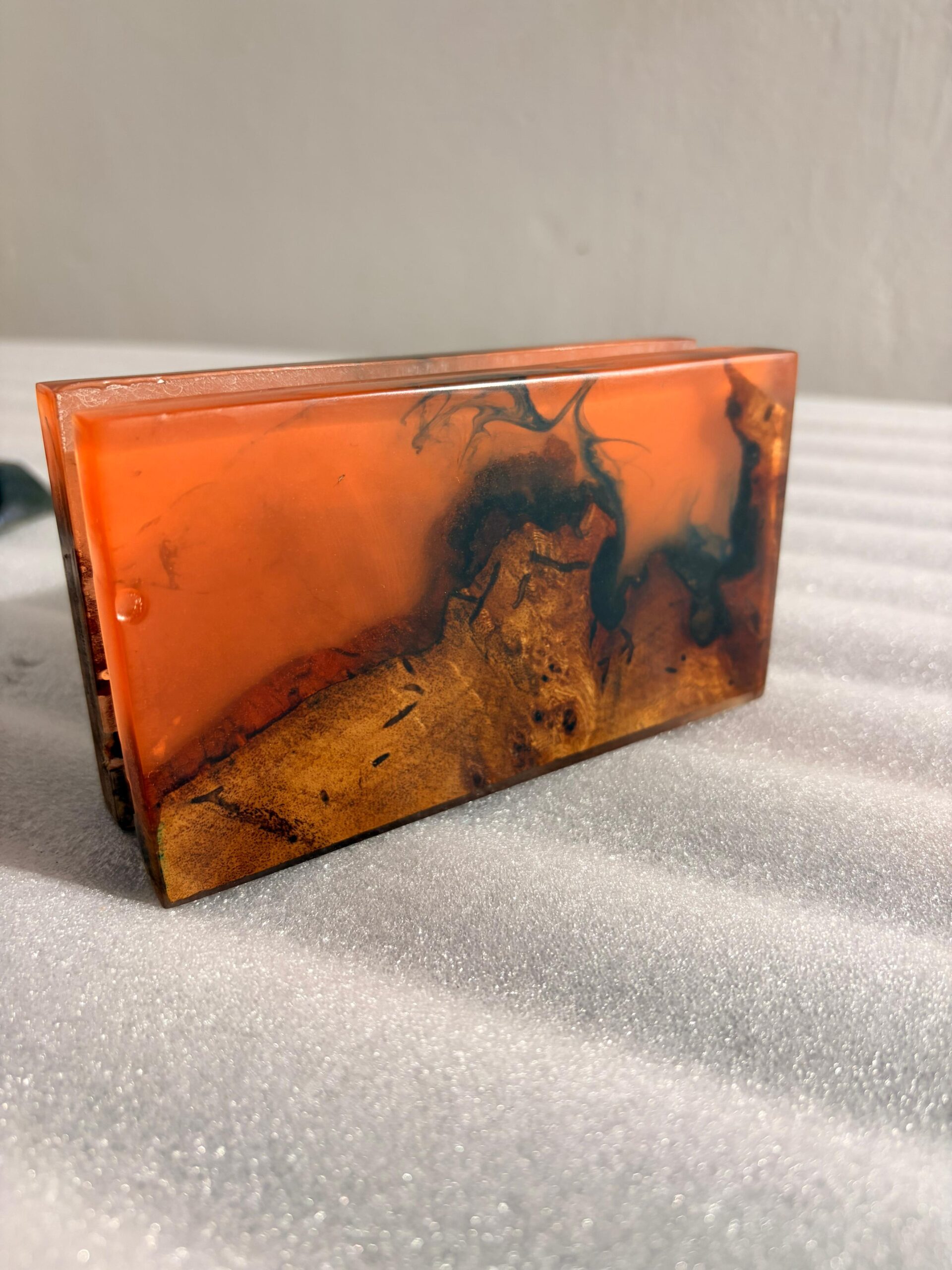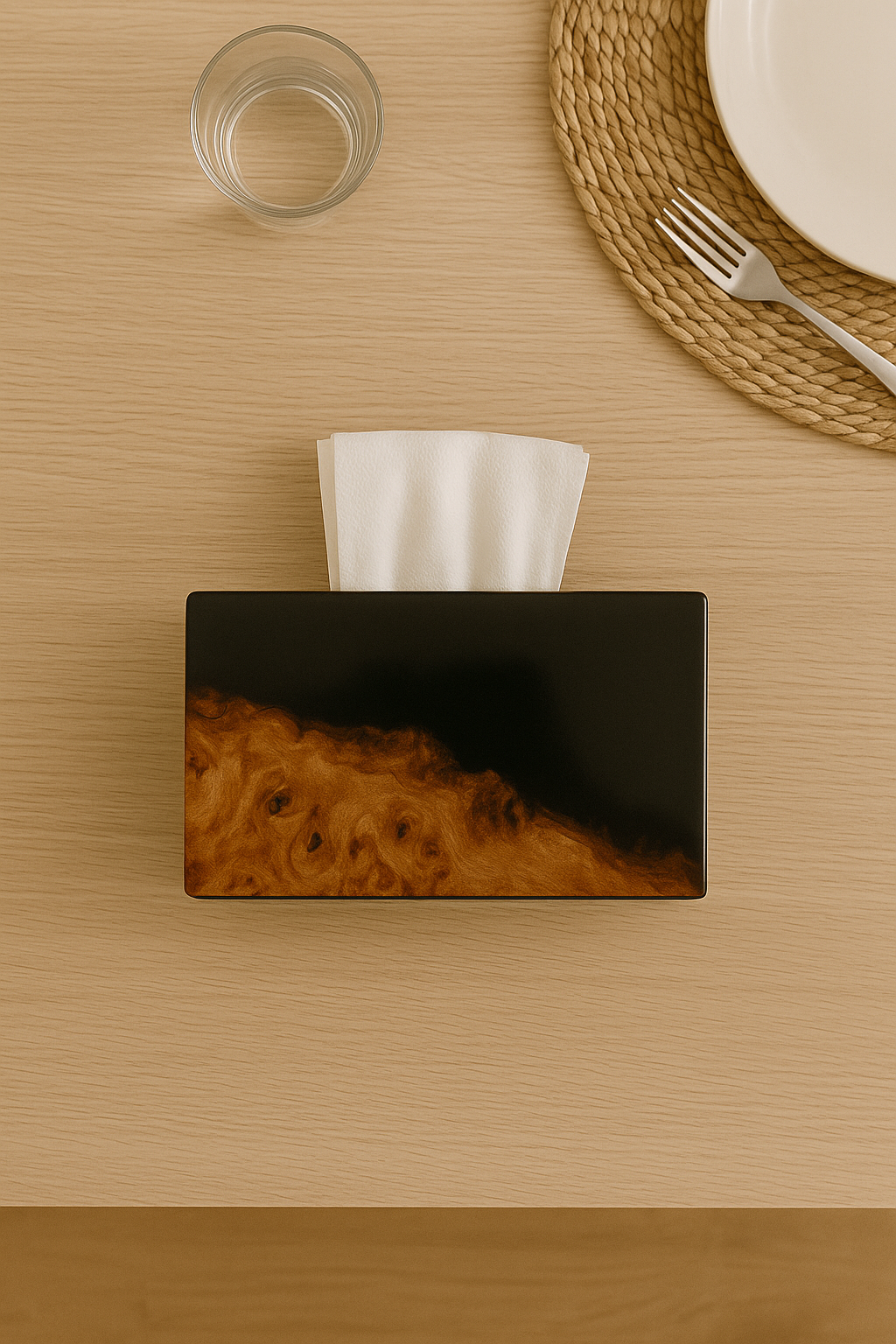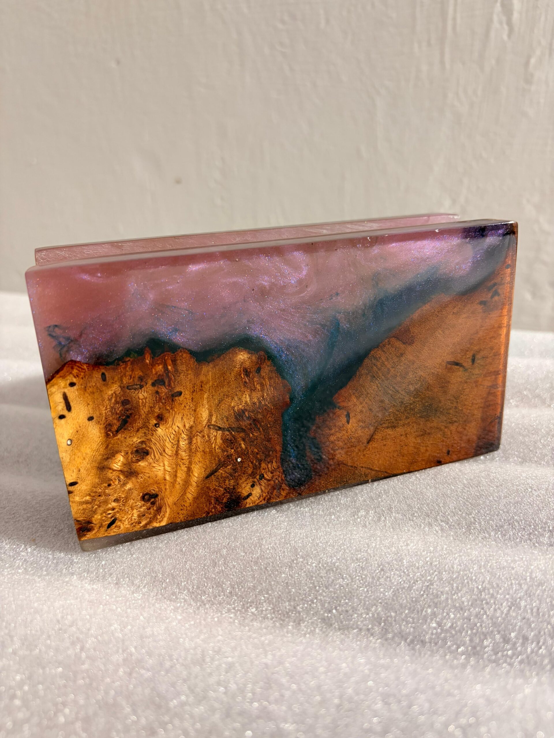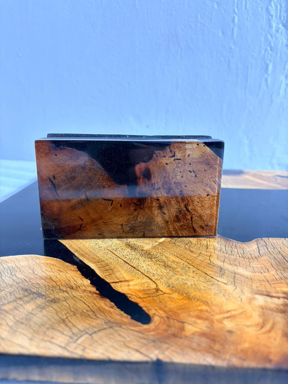 Enhance your home décor with this handmade Epoxy Resin & Natural Wood Tissue Holder.