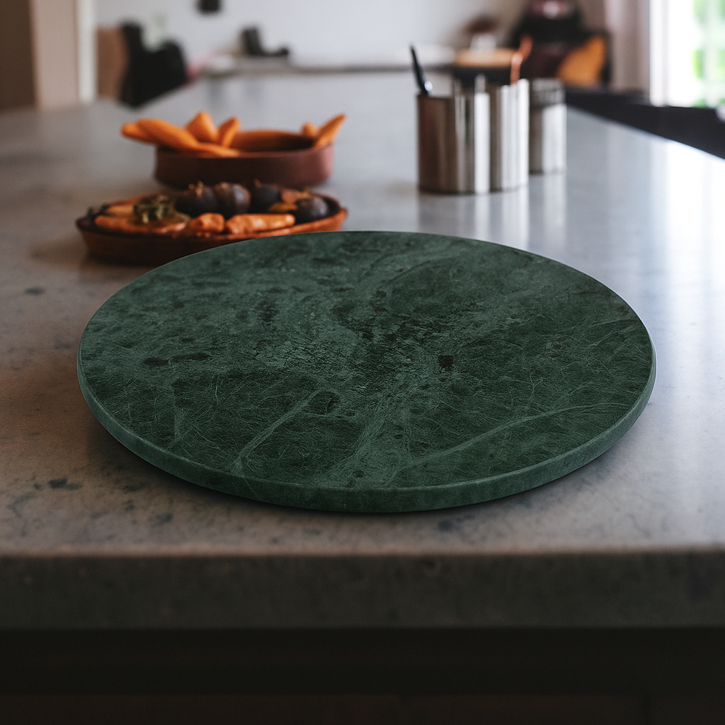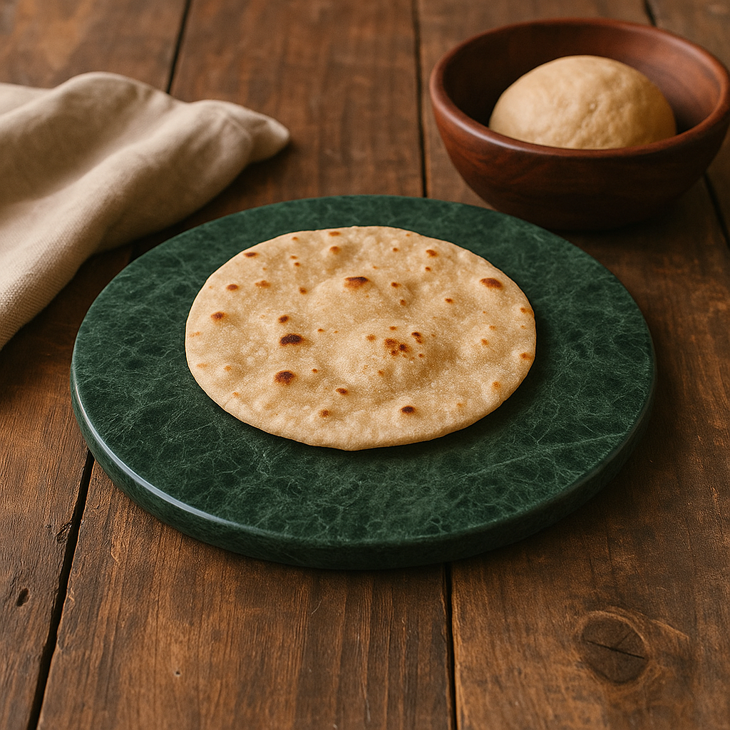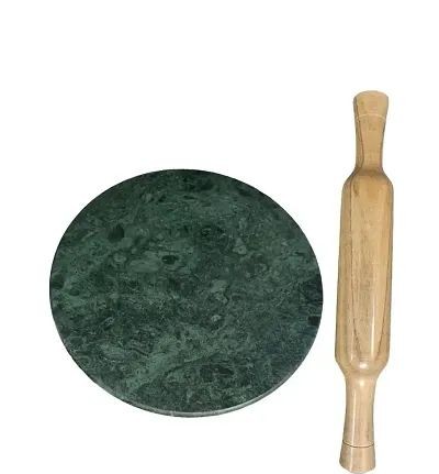 Bring elegance and durability to your kitchen with this Premium Green Marble Chakla, handcrafted from pure natural marble. Perfect for rolling rotis, chapatis, puris, and parathas, this chakla adds a touch of luxury and hygiene to your cooking. Each piece is hand-polished by skilled artisans to give a smooth, flat, and sturdy surface for effortless rolling. The heavy base prevents movement, ensuring stability while rolling dough.